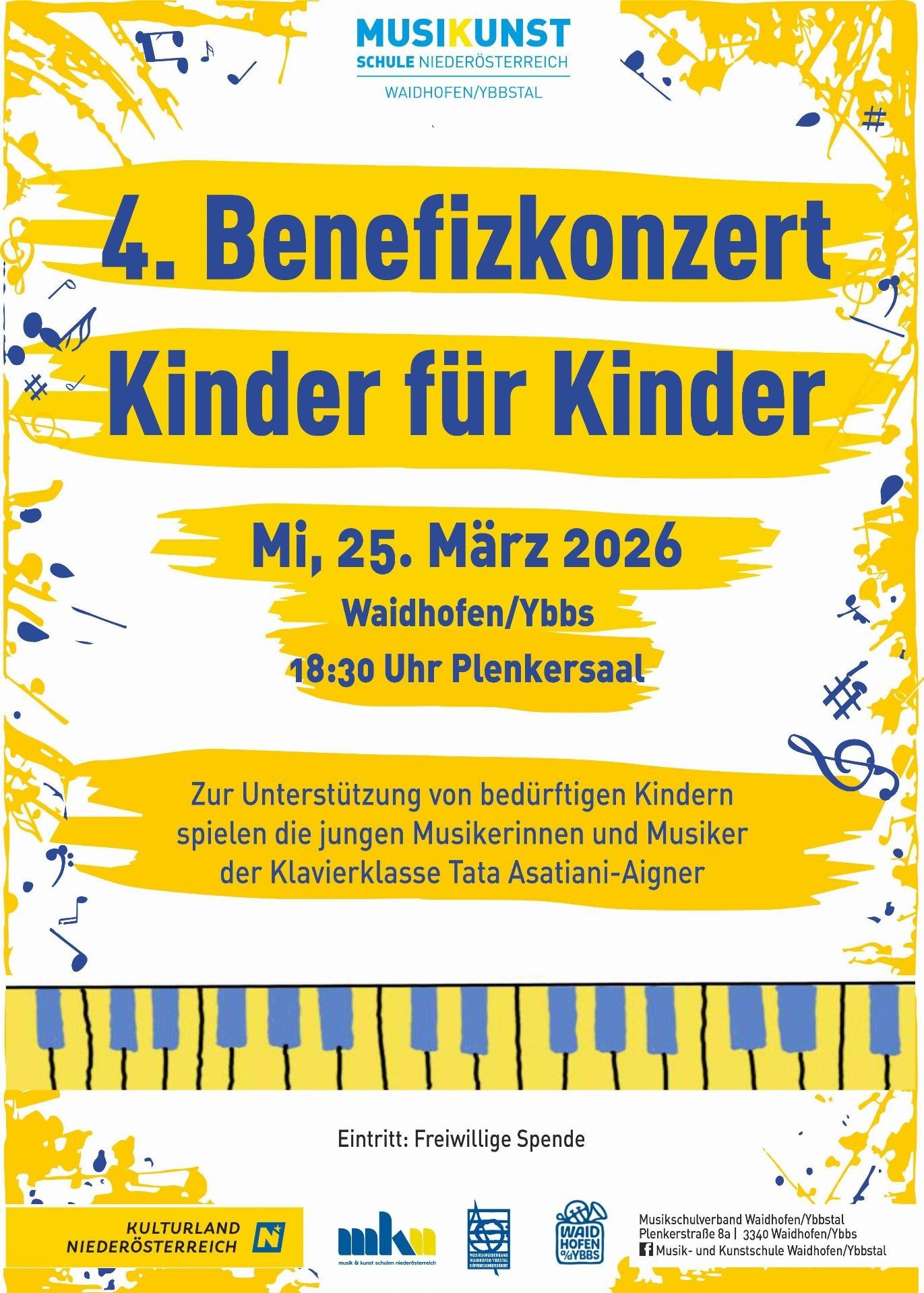 Sämtliche Einnahmen des Benefizkonzerts kommen hilfsbedürftigen Kindern in Waidhofen/Ybbs zugute.