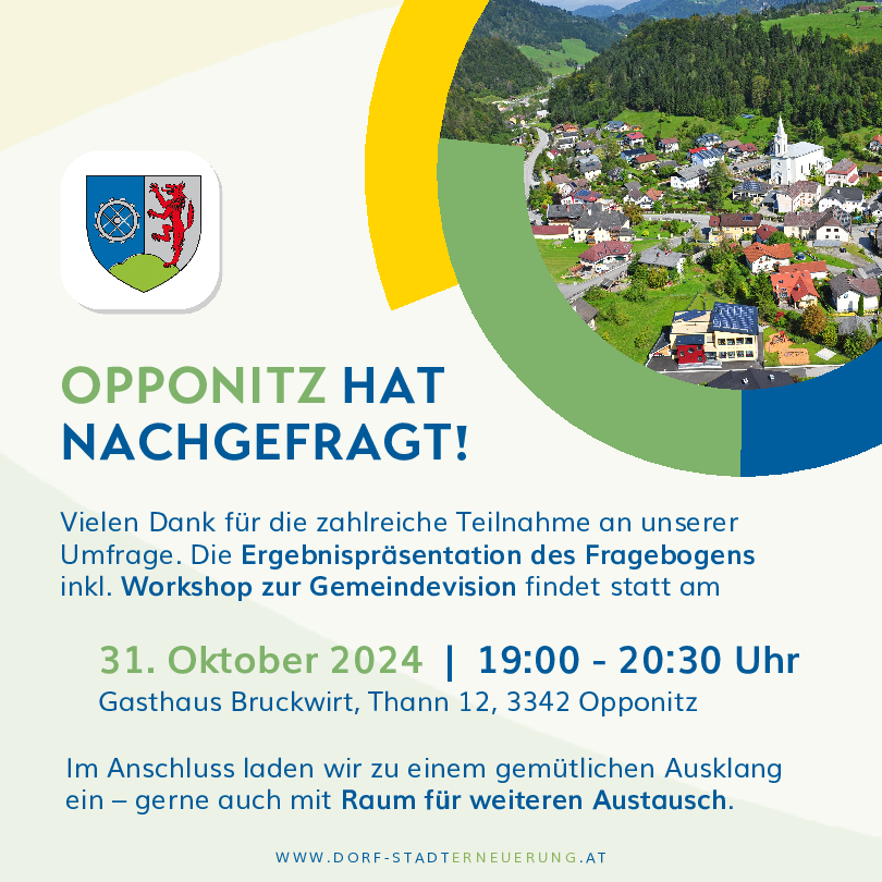Ergebnispräsentation des Fragebogens inkl. Workshop und Austausch zur Gemeindevision 2030 - Gemeinde und NÖ Dorf- & Stadterneuerung