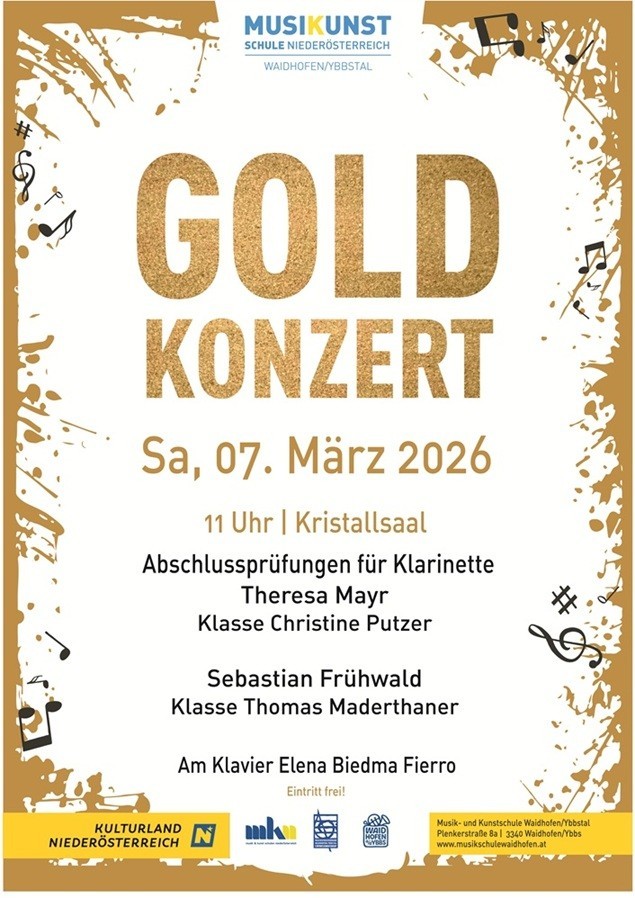 Die Goldprüfung bildet den höchsten Abschluss der musikalischen Ausbildungsstufen und erfordert neben technischem Können auch künstlerische Reife. Die Musik- und Kunstschule Waidhofen/Ybbstal zeigt sich stolz auf die Leistungen der beiden Talente, die mit viel Engagement, Ausdauer und Disziplin auf dieses Konzert hingearbeitet haben.