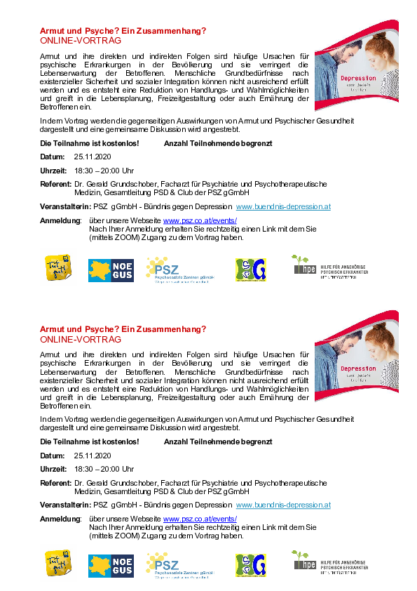 Online-Vortrag - Armut und Psyche? Ein Zusammenhang? - PSZ gGmbH - Bündnis gegen Depression