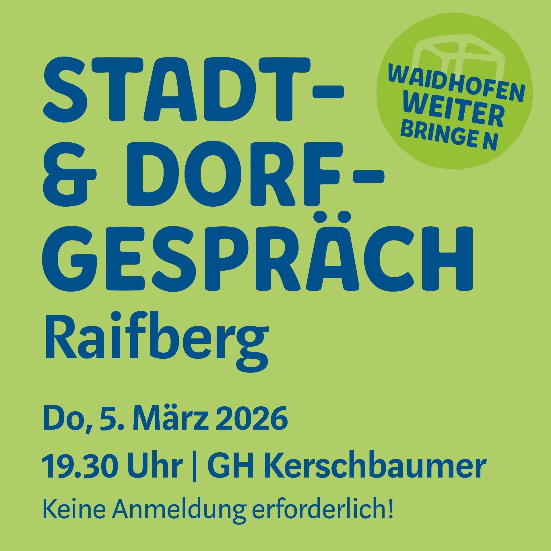 Waidhofen an der Ybbs lädt im Februar und März 2026 zu den Stadt- & Dorfgesprächen – einem Beteiligungsformat, das den offenen Austausch zwischen Bürgerinnen und Bürgern, Verwaltung und Politik ermöglicht.Dabei werden aktuelle Impulse aufgenommen und Anliegen angesprochen, etwa das brennende Thema Gesundheitsversorgung. Beginn ist jeweils um 19.30 Uhr, eine Anmeldung ist nicht erforderlich.