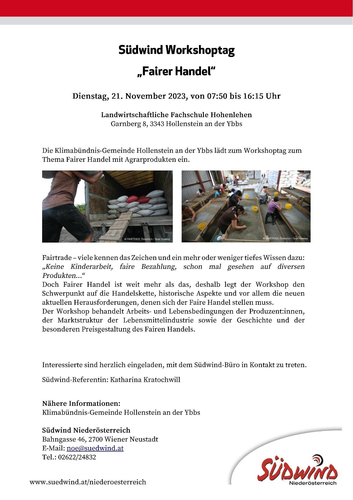Workshop "Fairer Handel" - LFS Hohenlehen und Gemeinde Hollenstein an der Ybbs