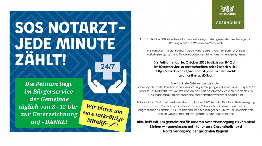 Die Petition ist ab 16. Oktober 2025 täglich von 8-12 Uhr im Bürgerservice zu unterschreiben oder über den Link auch online ausfüllbar.