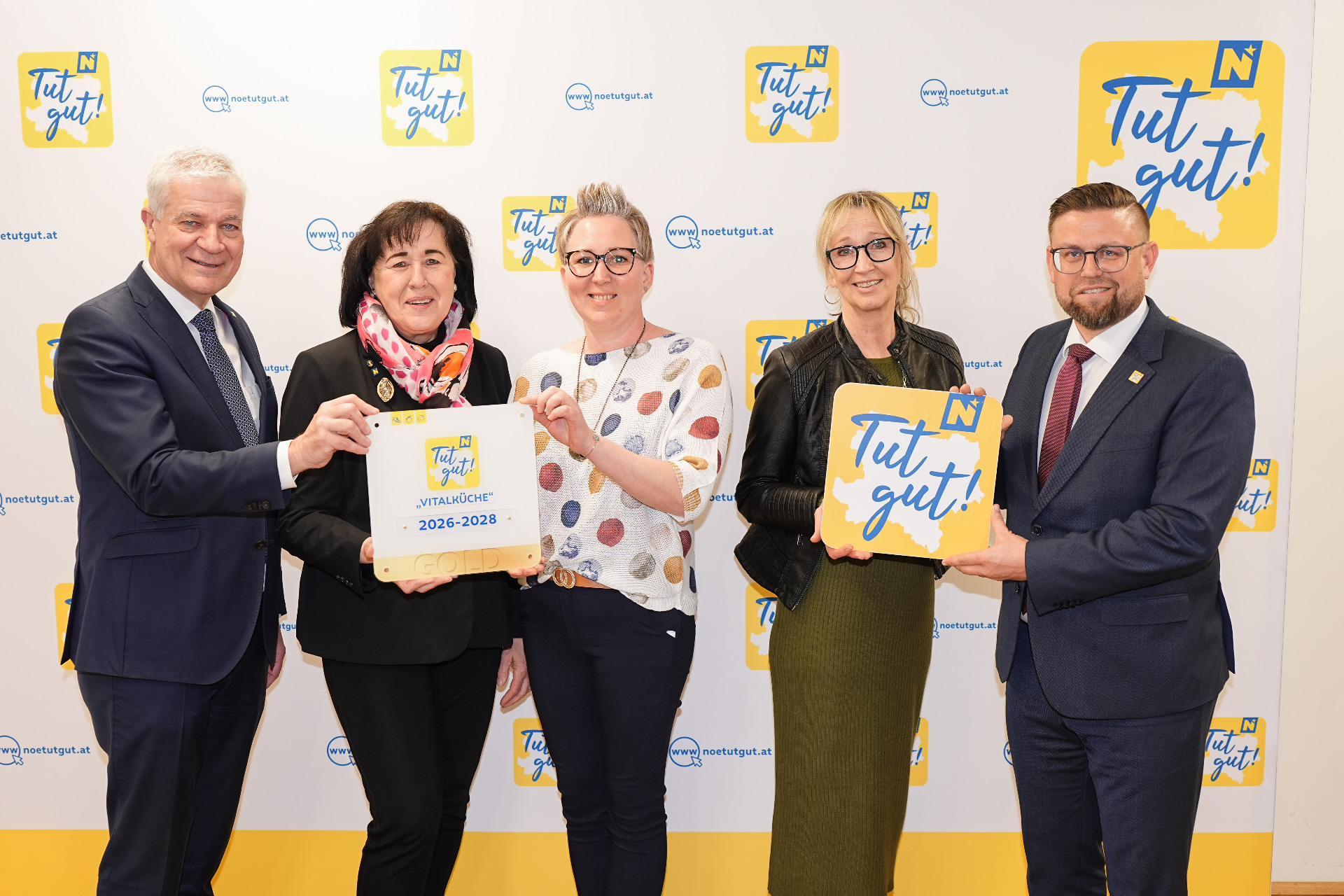 Bereits zum vierten Mal und so auch heuer wurden die beiden Vitalküchen im Kindergarten und an der Volksschule Kematen an der Ybbs mit der GOLDENEN AUSZEICHNUNG von „TUT gut!“ geehrt. Dies ist ein sichtbares Zeichen dafür, dass an beiden Standorten besonders viel Wert auf Qualität, Saisonalität, Frische, Regionalität und kindergerechte, gesunde Ernährung gelegt wird. Die Liebe zum Kochen verfeinert dazu noch jede Speise. Gratulation ergeht an die Köchinnen mit Herz und Leidenschaft: Kerstin Silbernagl, Christine Scheimer und Inge Harreither.