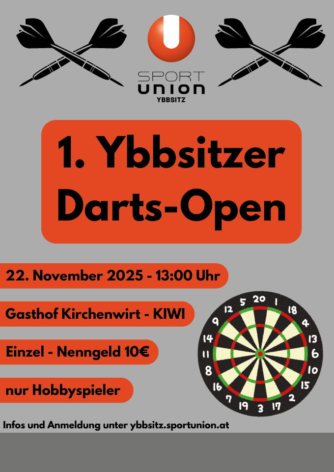 Die Sportunion Ybbsitz lädt zum 1. Ybbsitzer Darts-Open ein: