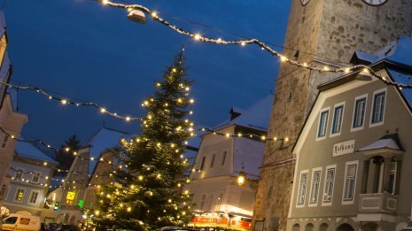 Herzstück der Waidhofner Weihnachtsbeleuchtung ist wie jedes Jahr der große Christbaum am Oberen Stadtplatz, der heuer von Maria Etzler gespendet wird.