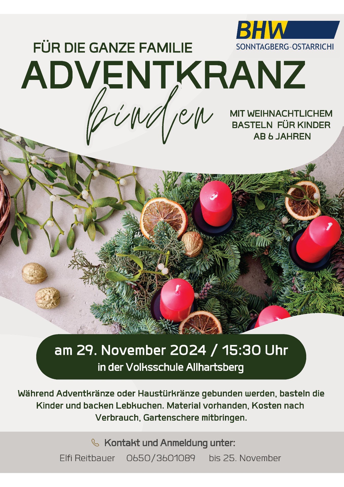 Allhartsberg: Freitag, 29. November 2024 15:30 Uhr bis 19:00 Uhr