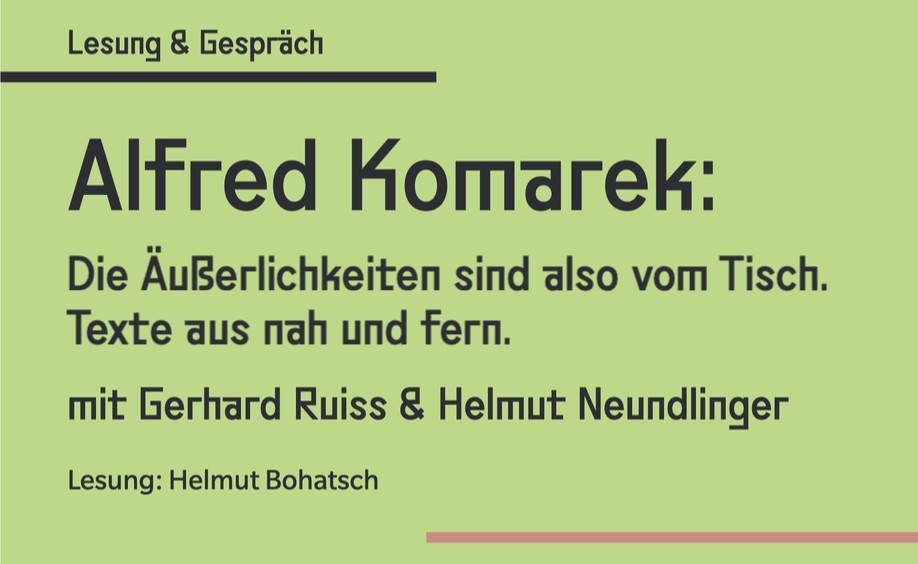 Alfred Komarek – ’Die Äußerlichkeiten sind also vom Tisch. Texte aus nah und fern. - Literaturhaus Noe