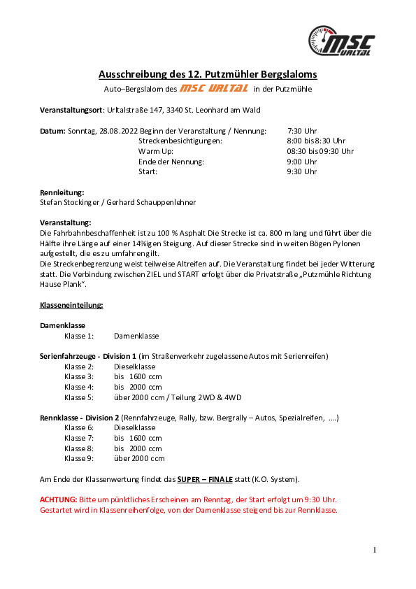 Auto-Bergslalom Putzmühle - MSC Urltal