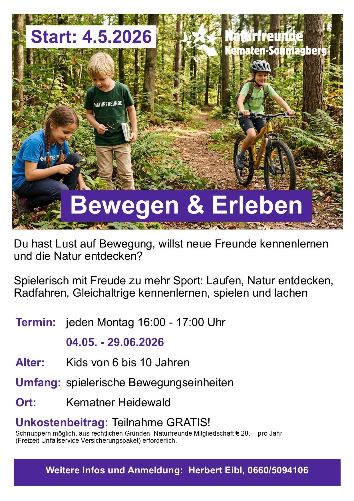 Spiel, Spaß und Action für Kids mit den Naturfreunden Kematen-Sonntagberg Kursstart am 4.5.2026