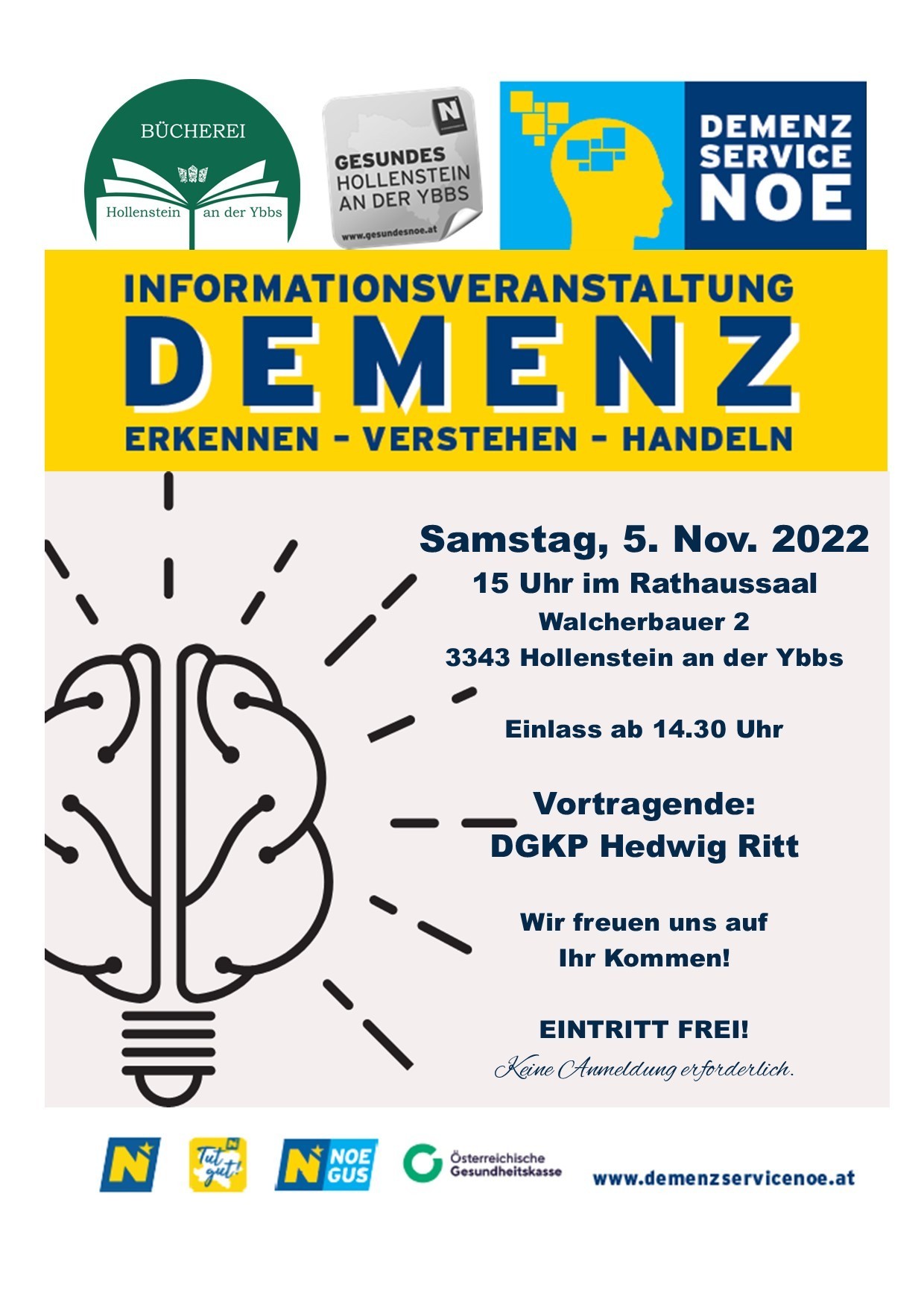 Demenz: „erkennen – verstehen – handeln“ - Gesunde Gemeinde und Bücherei Hollenstein