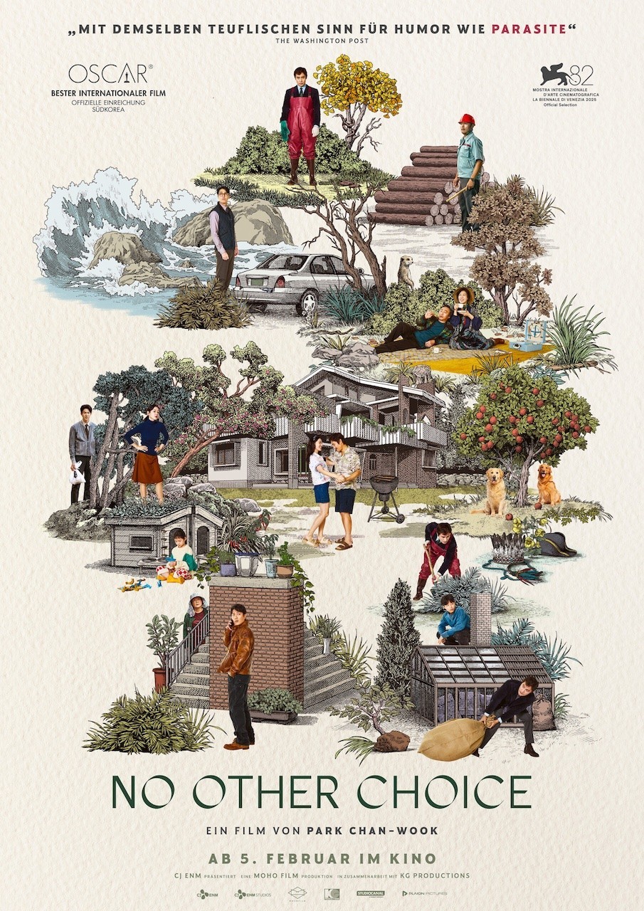Zum Film: Man-su hat sich mit viel Fleiß und harter Arbeit ein perfektes Leben geschaffen: Haus mit Garten, harmonische Ehe, talentierte Kinder und genug Zeit für sein geliebtes Bonsai-Hobby. Doch als KI plötzlich seinen Job ersetzt, müssen er und seine Familie auf allerlei Annehmlichkeiten verzichten: Die Tennisstunden der Gattin, das Netflix-Abo der Kinder und selbst die zwei treuen Golden Retriever können sie sich nicht mehr leisten. Und je länger Man-su vergeblich Bewerbungen schreibt, desto näher rückt auch der Verlust des geliebten Hauses. Schließlich begreift er: Nicht der Mangel an Jobs ist das Problem, sondern die Menge an Mitbewerbern. Man-su bleibt keine andere Wahl als sich – auf sehr kreative Art und Weise – seiner Konkurrenten zu entledigen.