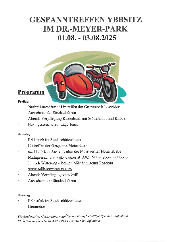 Ybbsitz: Freitag, 01. August 2025 14:00 Uhr bis Sonntag, 03. August 2025 10:00 Uhr