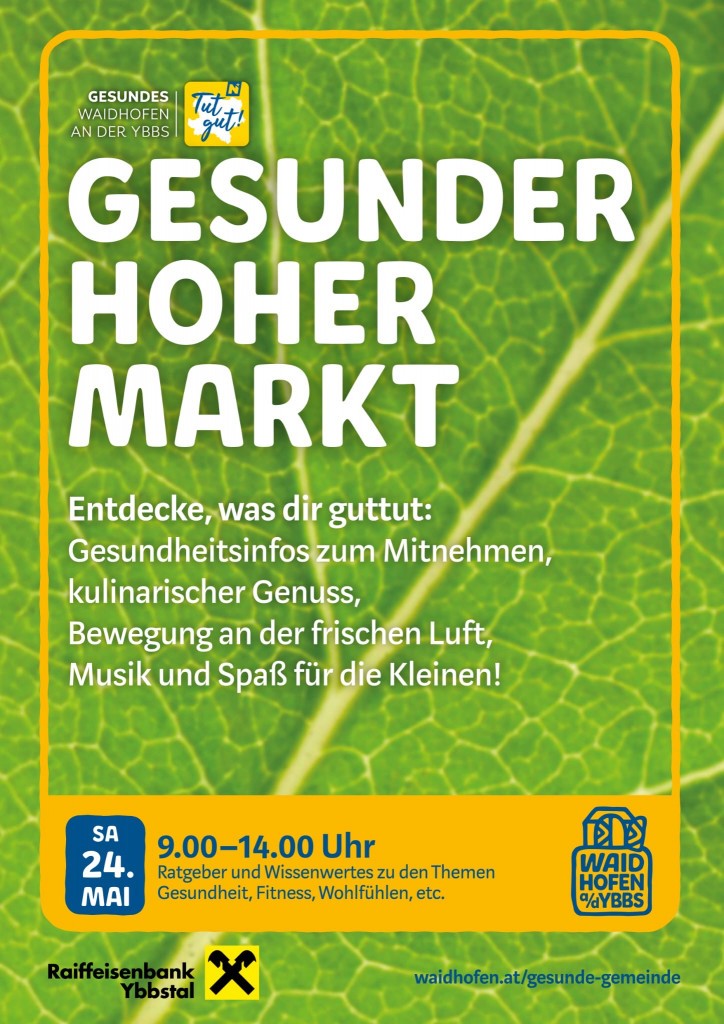 Unter dem Motto “Gesunder Hoher Markt” lädt die Gesunde Gemeinde Waidhofen zu einem spannenden und informativen Tag ein, bei welchem sich zu verschiedenen Gesundheitsthemen ausgetauscht werden kann.