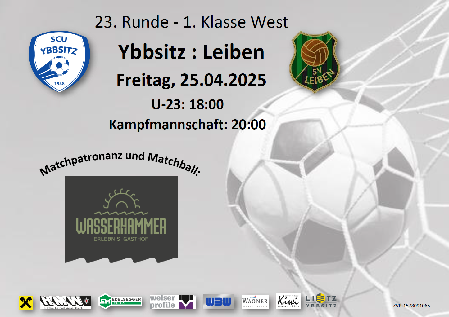 Freitag, 25. April 2025, Beginn U-23 18.00 Uhr / Kampfmannschaft 20.00 Uhr