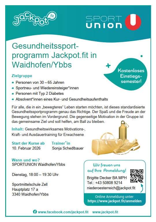 Jackpot.fit in Waidhofen/YbbsDu möchtest wieder mehr Bewegung in deinen Alltag bringen? Dann ist Jackpot.fit genau das Richtige für dich!