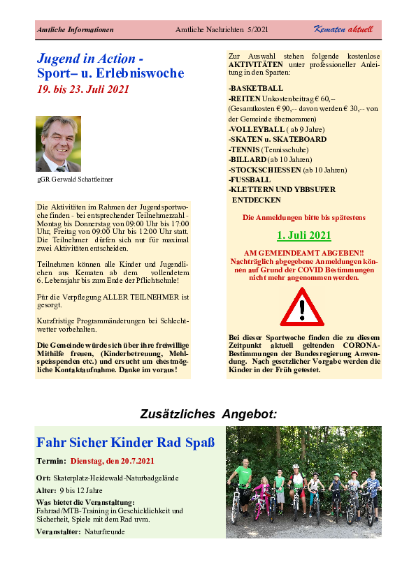 Kematen a/d Ybbs: Montag, 19. Juli 2021 bis Freitag, 23. Juli 2021