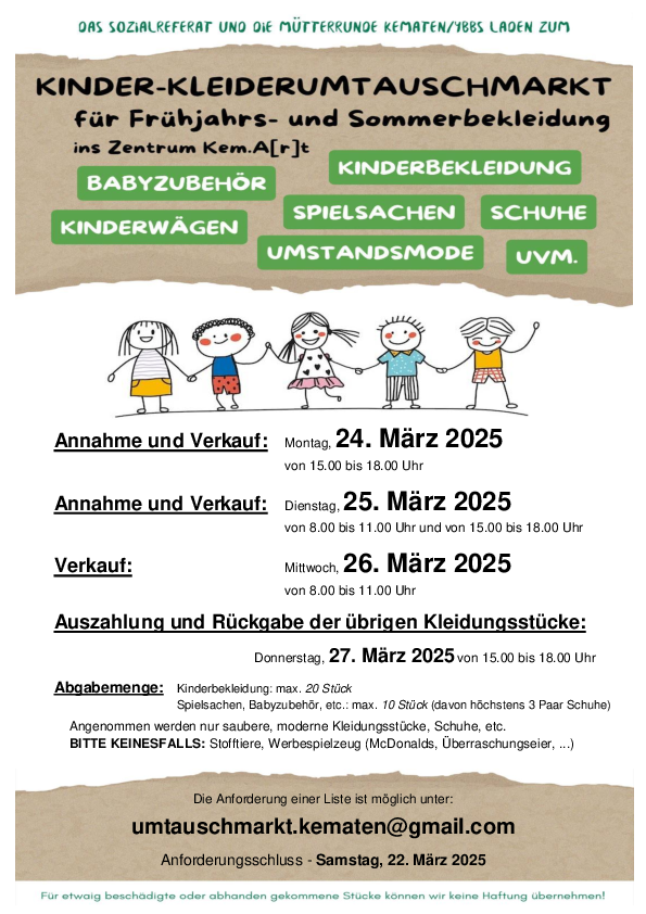 Kinder-Kleiderumtauschmarkt - Sozialreferat und Mütterrunde