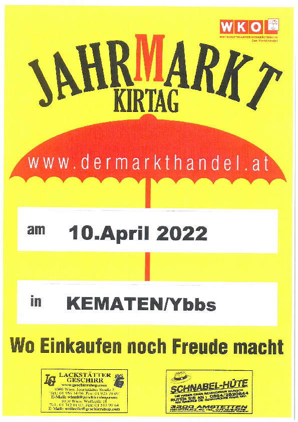 Kematen a/d Ybbs: Sonntag, 10. April 2022 08:00 Uhr bis 18:00 Uhr