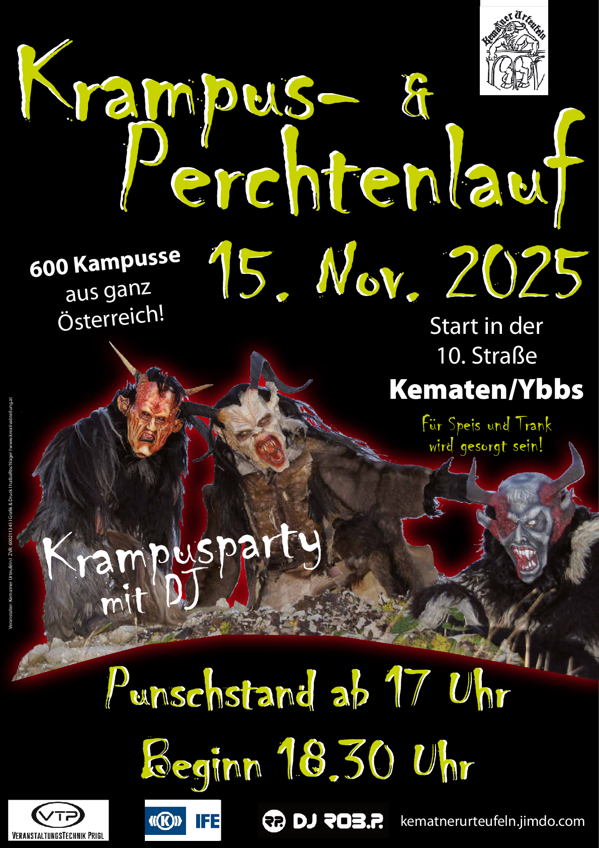 Am 15. November 2025 heißt es wieder: Gänsehaut und jede Menge Spaß! Über 600 Krampusse aus ganz Österreich ziehen durch unseren schönen Ort und sorgen für ein beeindruckendes Spektakel. Das erwartet dich: Punschstand ab 17:00 Uhr – Komm vorbei und wärm dich bei einem leckeren Punsch auf! Start des Laufs um 18:30 Uhr – Erlebe die faszinierende Tradition hautnah. Aftershowparty mit DJ – Feiere mit uns noch lange nach dem Umzug! Wir freuen uns auf dich und einen unvergesslichen Abend voller Brauchtum, guter Stimmung und tollen Begegnungen! Kematner Urteufeln