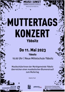 Der Musikschulverband Waidhofen/Ybbstal lädt am Donnerstag, 11. Mai 2023 zum Muttertagskonzert in die Aula der Mittelschule Ybbsitz ein!