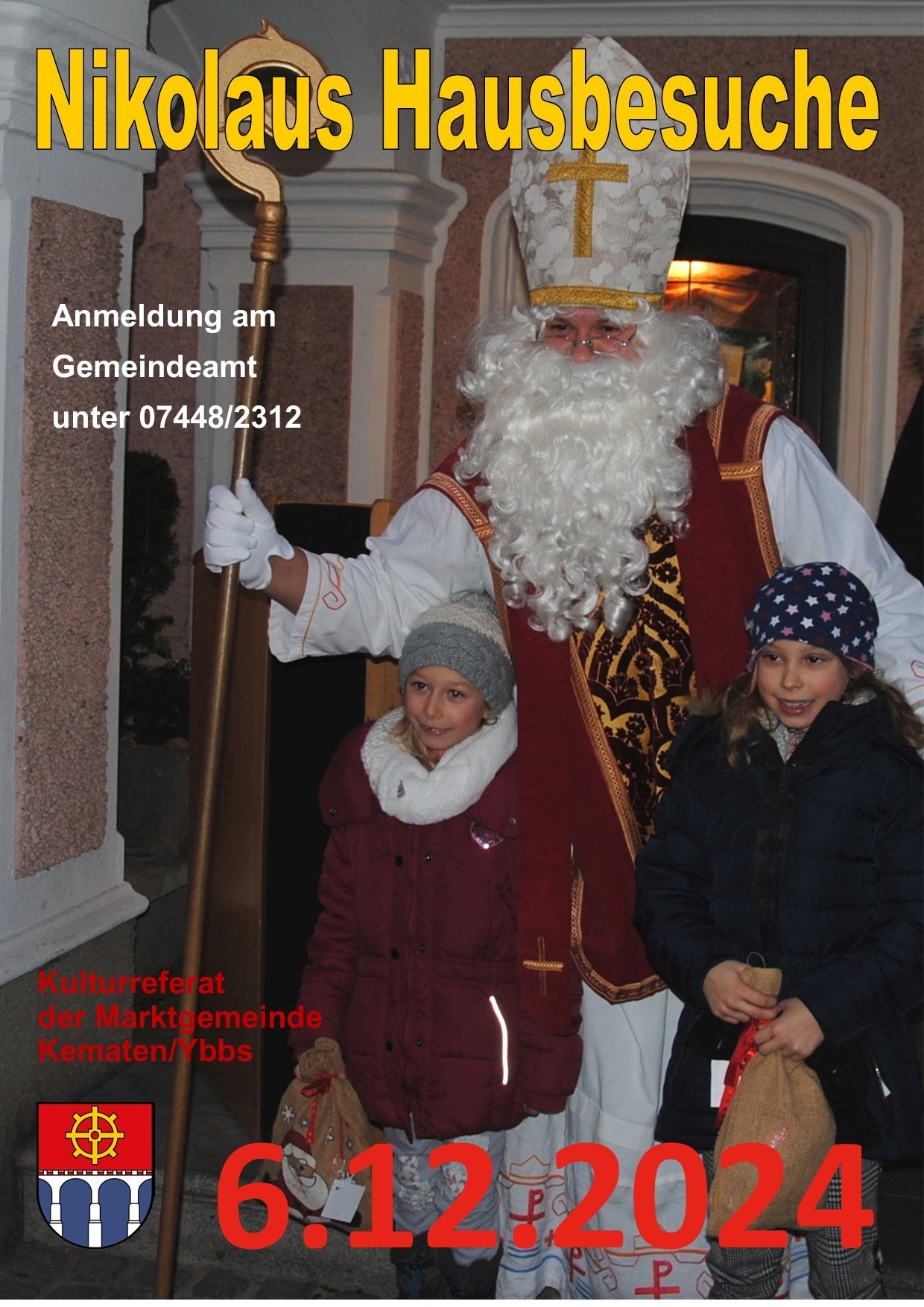 um 15.00 Uhr ins Gasthaus BACHLERHOF, Abetzdorf. Nikolaussackerl bitte selbst mitbringen - werden vom Nikolaus an die Kinder überreicht! Anschließend erfolgen Hausbesuche - bitte um Voranmeldung am Gemeindeamt unter 07448/2312-16.