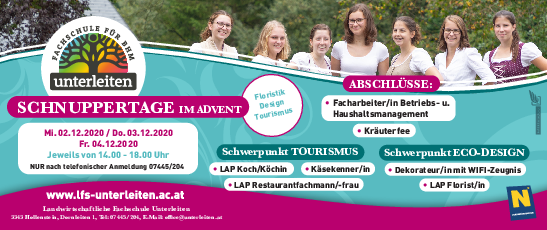 NEUER TERMIN IM JÄNNER !! Schnuppertage im Advent - LFS Unterleiten