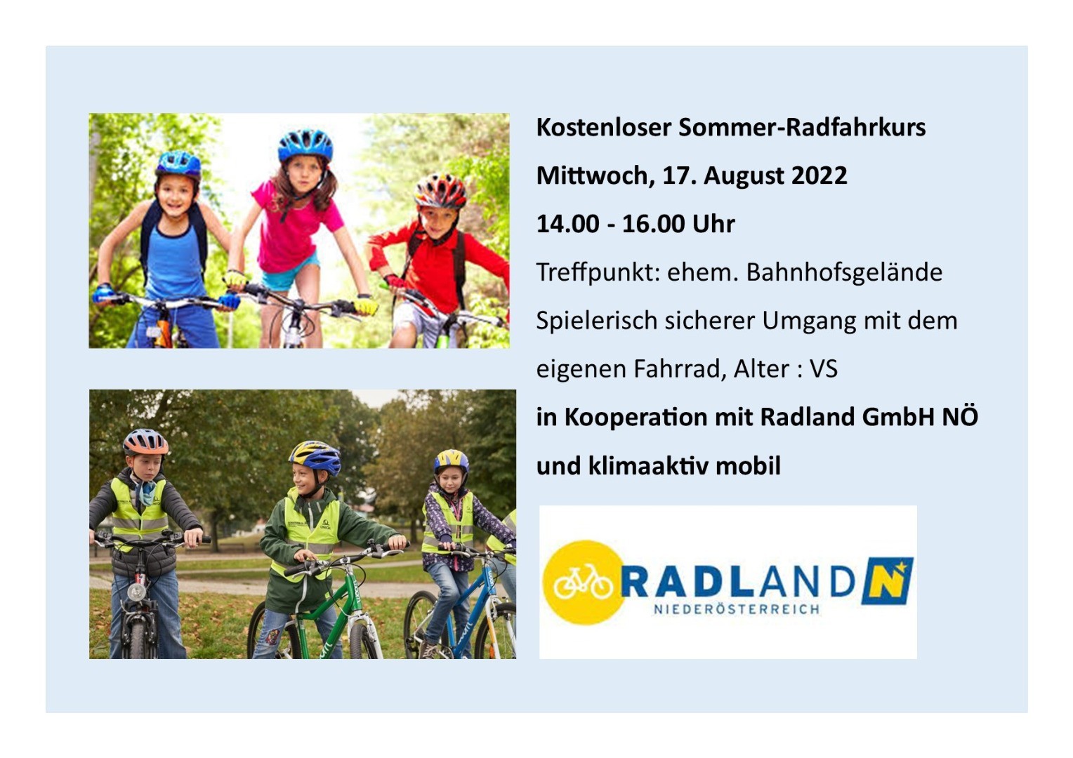 Radfahrkurs - Radland NÖ - Ybbsitzer Ferienprogramm