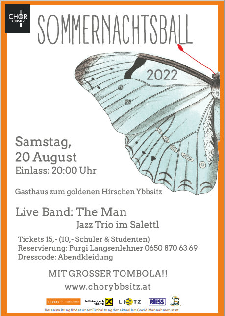 Der CHOR Ybbsitz lädt herzlich zum 1. Sommernachtsball in den Saal vom GH Zum Goldenen Hirschen und wünscht viel Vergnügen bis in die Morgenstunden!