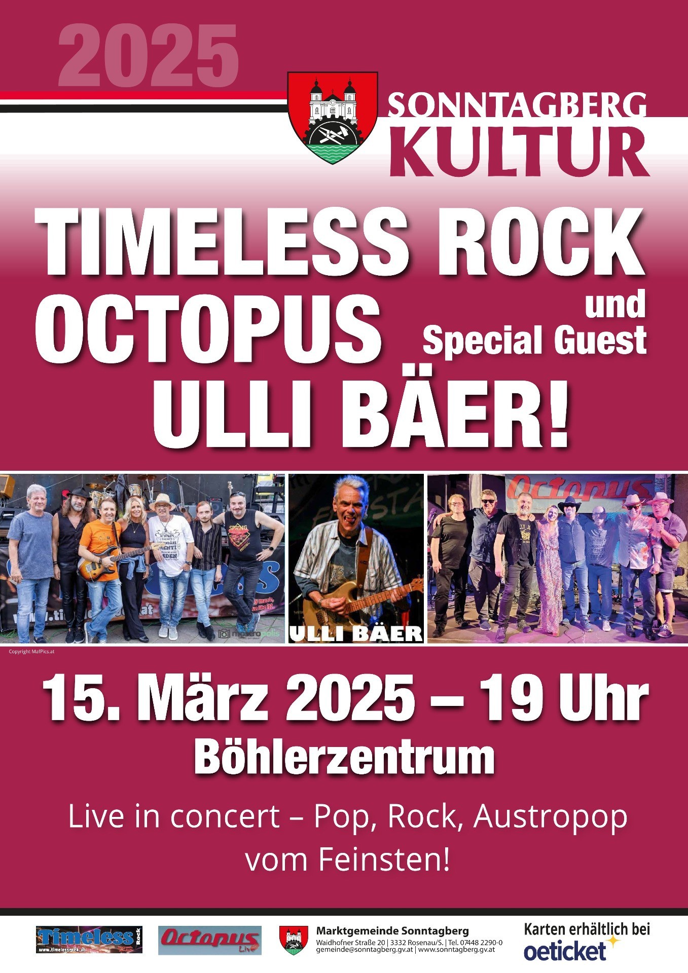 Timless Rock, Octopus und Special Guest Ulli Bäer - Kulturreferat Marktgemeinde Sonntagberg