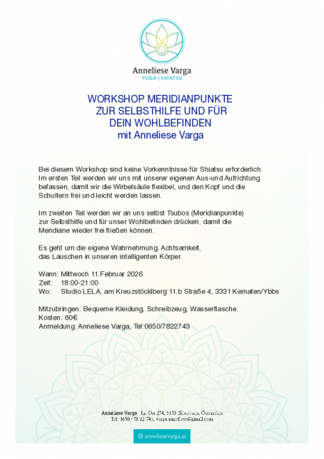 Workshop "Meridianpunkte zur Selbsthilfe und für Dein Wohlbefinden" - Anneliese Varga