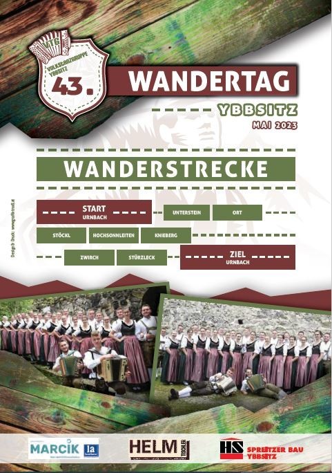 Die Volkstanzgruppe lädt zum Ybbsitzer Wandertag ein - Start und Ziel Haus Urnbach - Knieberg 26.